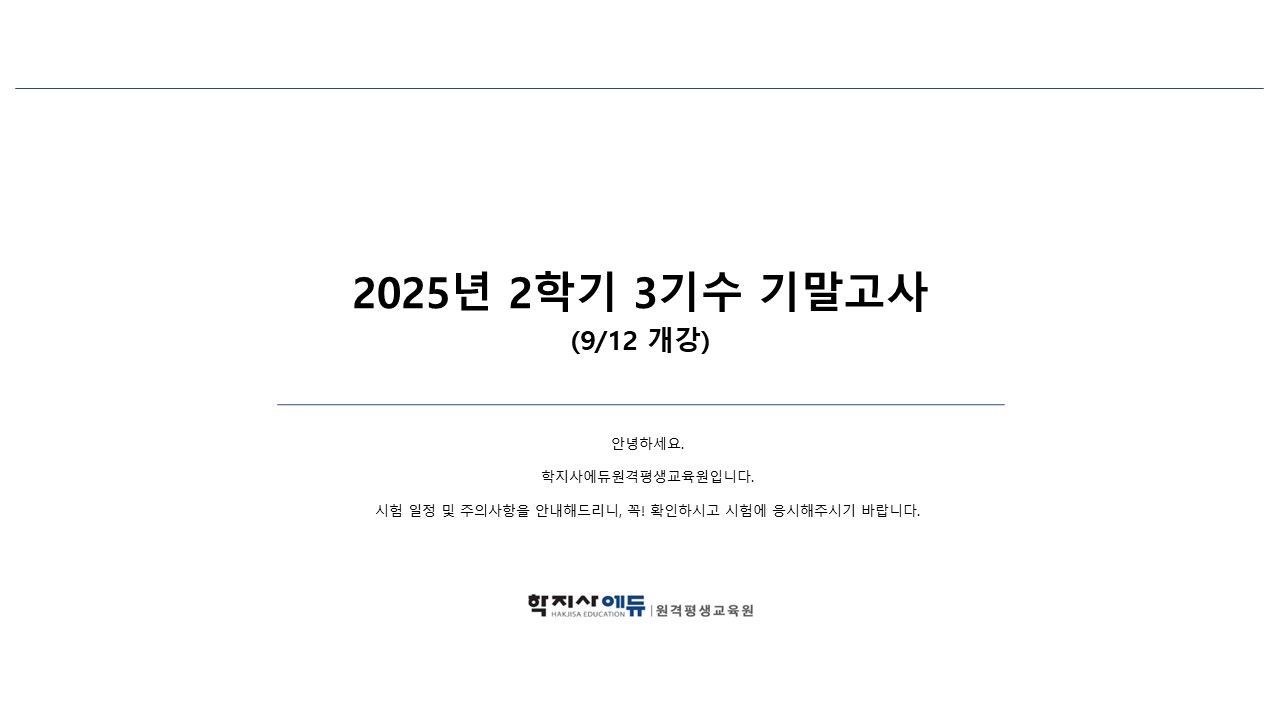 2025년 2학기 3기수(9월 12일 개강반) 기말고사 일정 안내