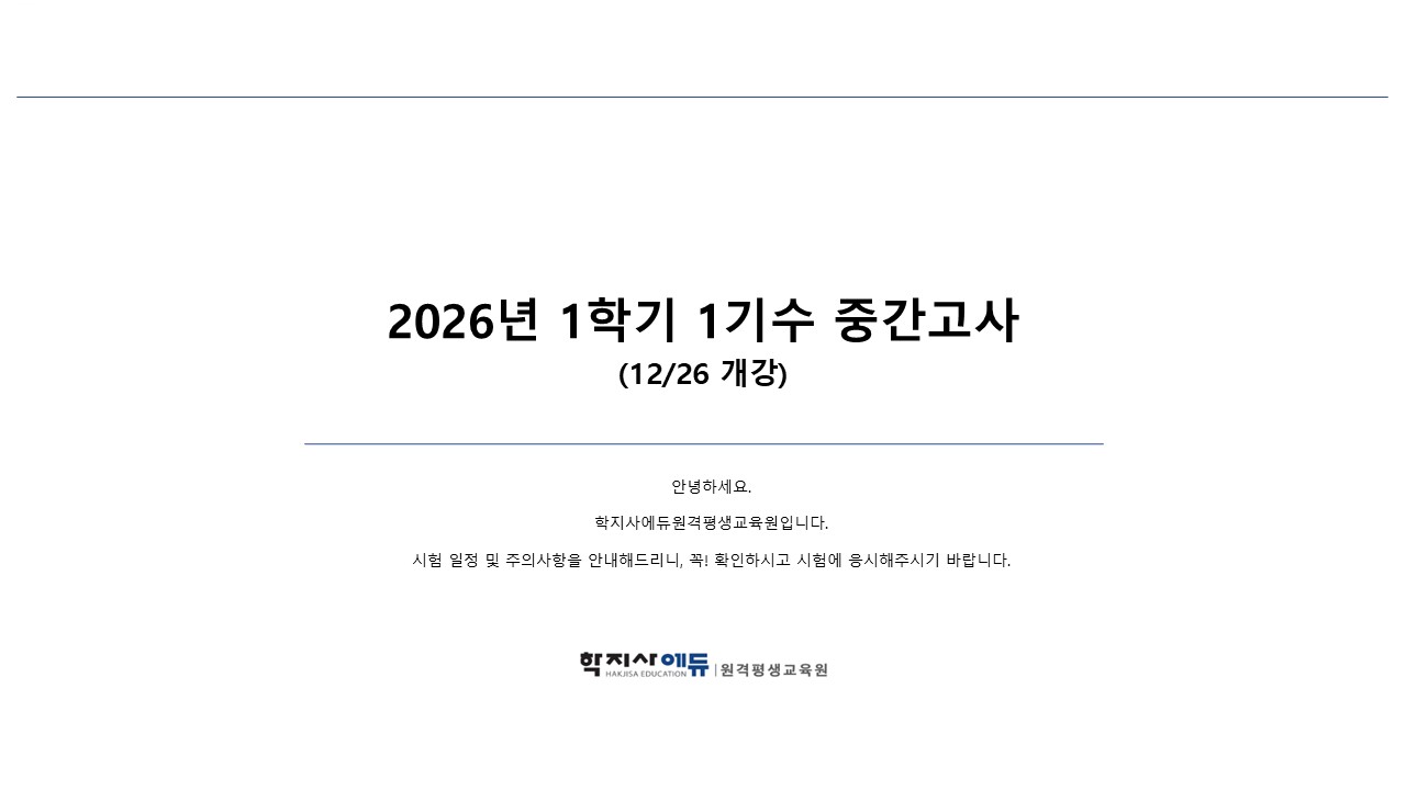 2026년 1학기 1기수(12월 26일 개강반) 중간고사 일정 안내