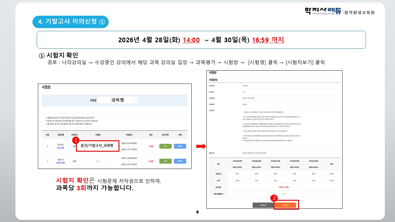 2026년 1학기 2기수(1월 9일 개강반) 기말고사 일정 안내