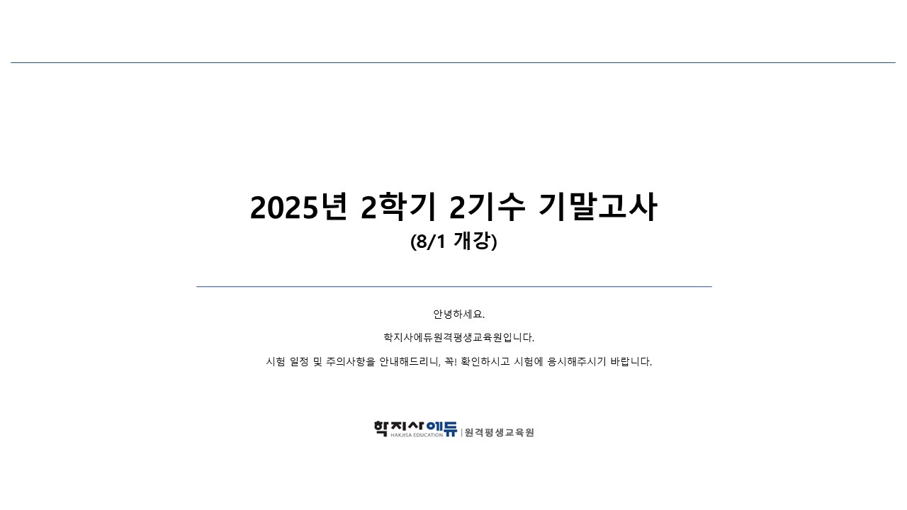 2025년 2학기 2기수(8월 1일 개강반) 기말고사 일정 안내