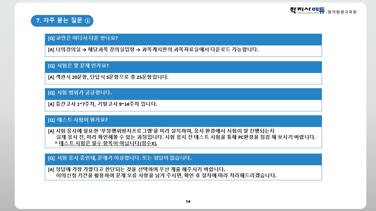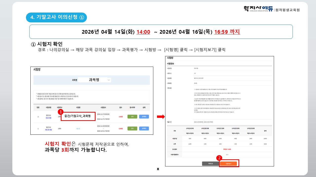 2026년 1학기 1기수(12월 26일 개강반) 기말고사 일정 안내
